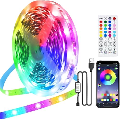 LED remsa 10M, PSTAR Bluetooth LED remsa med fjärrkontroll och APP kontroll musikläge, musik/röstsynkronisering, USB-driven, Färgändrande LED för belysning av hemmet, fest, kök