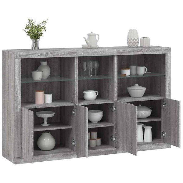 vidaXL Skänkar med LED-belysning 3 st Sonoma Ek Konstruerat Trä
