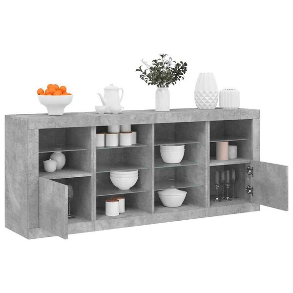 vidaXL Skänk LED-belysning Betonggrå 283x37x67cm