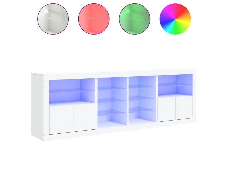 vidaXL Skänkar med LED-belysning 3 st vit konstruerat trä