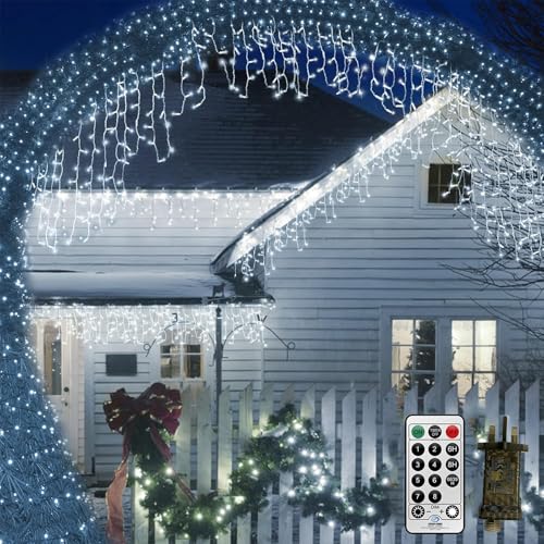 LED-ljusslingor 10M 400LED älva istappar lampor 8 lägen utomhus ljusslingor plug in gardin belysning anslutbar för jul bröllop fest hem trädgård sovrum inomhus utomhus dekoration (Vit)