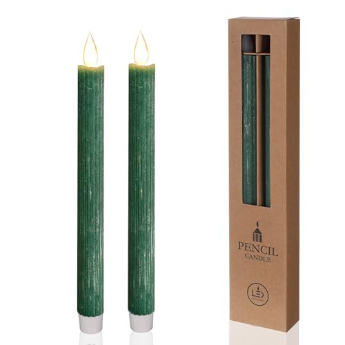 Quilt Real Wax LED Tapered Candle Electric Flickering Candle Battery Operated (Set of 2), Electric Candles Flicker with Timer Function (Moss Green)