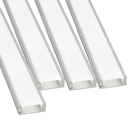 JANDEI - Set med 4 grå U-formade aluminiumprofiler, 1 meter lång, för LED-remsor, halvtransparent rundad diffusor, ändkåpor och klämmor ingår