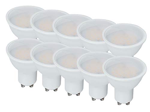 LEDLUX, 10 stycken LED-lampor Spotlight GU10 10 W, 1000 lumen, 110° opal-diffusor, 5 års garanti, GU10 ljusare (varm vit 3 000 K)