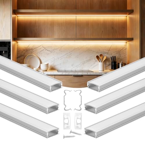 VEVOR Aluminiumprofil för LED-remsa 1 m, 6-delad förpackning, LED-kanal, med diffusor opal ändpluggar och monteringsfästen, ljusdekoration för sovrum vardagsrum kök
