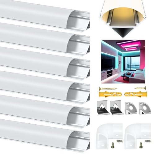 Angdarun LED-profil, 6-pack LED aluminiumprofil V-form 1 meter, LED aluminiumkanal för LED-kanal/LED-diffusor, med mjölkvit LED-remskåpa, monteringsmaterial för LED-remsor