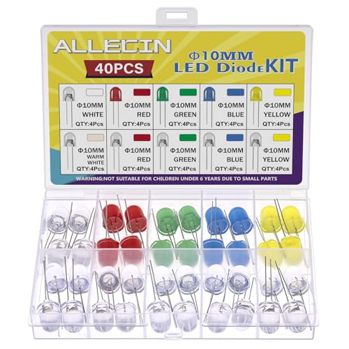 ALLECIN 10 mm LED-diod hög ljusstyrka 10 färger röd blå grön gul vit varm 10 mm spridda ljusdioder set 2 stift runt huvud dioder led (totalt 40 st 4 st per färg)