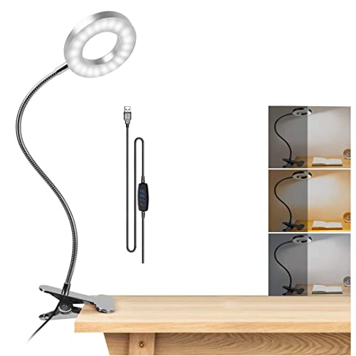 NIWWIN LED-belysning med klämma, justerbar bordslampa som skyddar synen 3-färgtemperaturer för strömbrytaren, USB-strömförsörjning skrivbordslampa, 48 LED-dioder, 7 watt, 360 graders roterbar hållare.