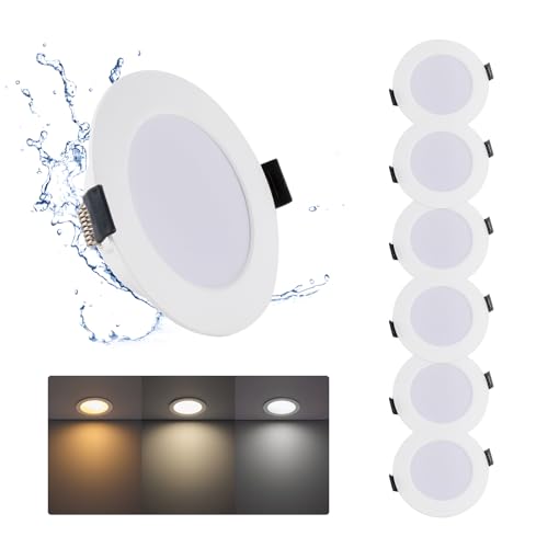 HOMEOW Infällda takspotlights 4 W, Oxeye 380LM IP44, inomhus downlight LED varmvit 2700K, naturlig 4000K och kall 6000K, bländare 55–68 mm, extra platt 29 mm, ej dimbar, 6-pack