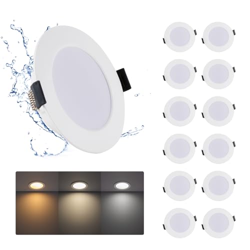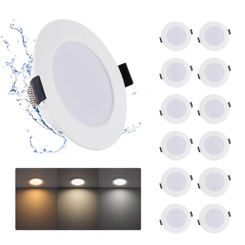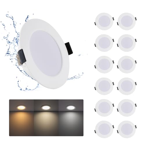 Grebeam 12 * 5W LED Downlight Platt, Badrumsspotlight IP65, Varmvit Neutralvit Kallvit 3000K/4000K/6000K, LED Takspotlight 80mm för Badrum Kök Vardagsrum