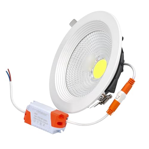 Jandei - Infälld COB LED downlight 10 W (60 W ekvivalent), rund spotlight aluminium vit ram, 130 x 50 mm (skär hål 100–105 mm), 900 lumen, IP44. Perfekt badrum och kök - 1 st (kallt ljus 6000K)