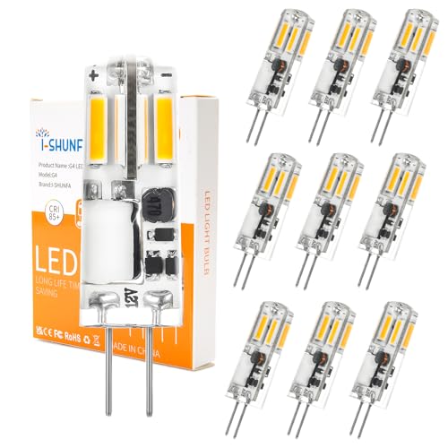 I-SHUNFA G4 LED-lampor, naturvit 4 000K, AC/DC 12 V 1,2 W ersättning för 10W-15W halogenlampor, 130 LM inte dimbar, små LED-lampor för fläktkåpa, kök (10 st)