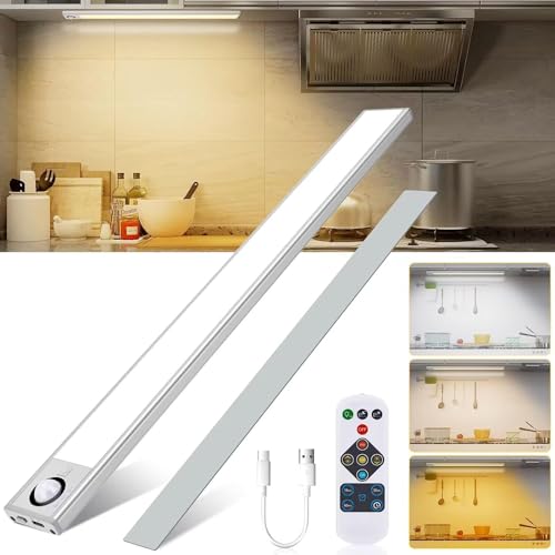 LED underskåp lampor för kök 2-pack LDOPTO dimbar skåp garderob lampor med trådlös fjärrkontroll inbyggd magnet fästremsa batteridriven varmt vitt ljus
