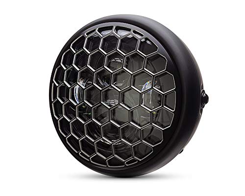 Alchemy delar motorcykel strålkastare LED 19,6 cm med hemkamma grill för retro café racer & Streetfighter BLack
