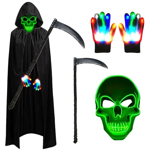 Anyingkai Död Halloween-kostym, halloweenkostym, Halloween-huvkappa, med halloweenmask, LED-handskar, halloweenskytte för cosplay karneval fest kostymer (grön)