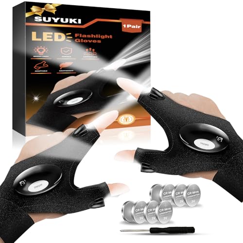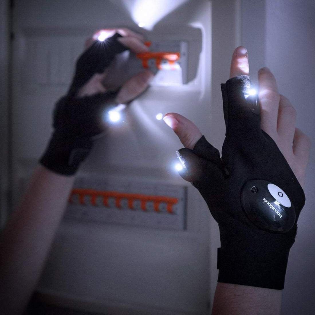 Shunfaji LED-handskar, Herrpresent, handskar med vattentäta lampor, fisketillbehör, julklapp, praktiska prylar för fiske/camping/hantverkare/pappa (A, ett par)