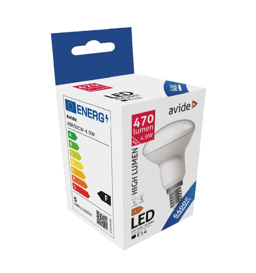 Avide | LED E14-lampa 4,9W | Kallvit 6400K | R50