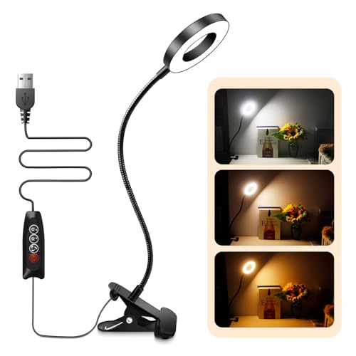 Akynite Clip-on-klämlampa för 3 färger och 10 dimbar ljusstyrka, 48 LED-tatuering, flexibel, USB, för studier/arbete/spel/ögonvård/läsning/sängbord/skrivbord (svart)