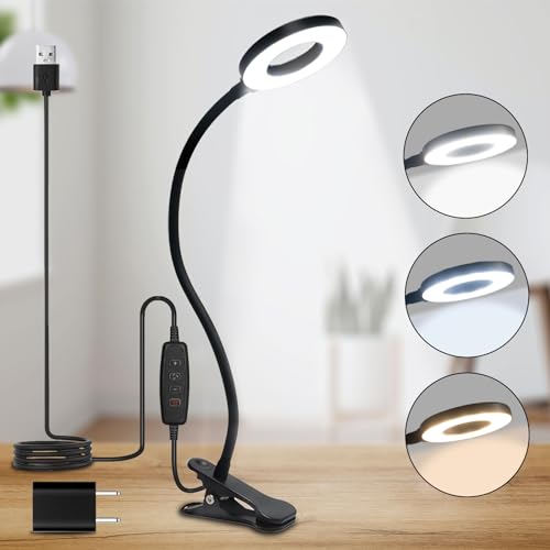 LQWELL® LED-Klämlampa Ring Läsljus, 360° Flexibel Clip-On Skrivbordslampa För Hemmakontor, 3 Färgtemperaturer, 10 Ljusstyrka Och Steglös Dimning (Halslängd 40 CM)