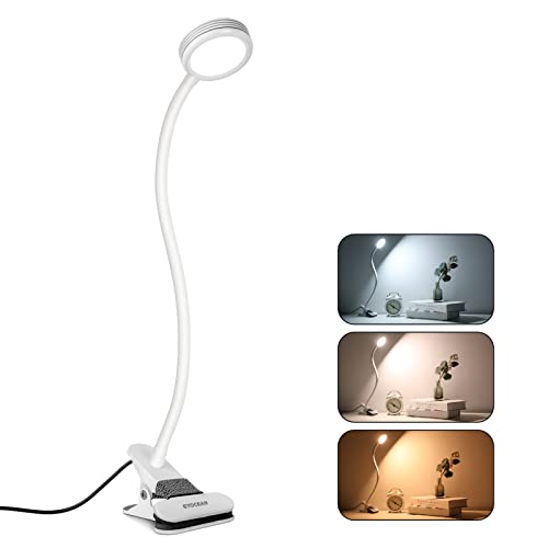 EYOCEAN lä, LED-klämlampa, svanhal, barnsäng, 3 färglägen och 9 ljusstyrkenivåer, ögonvård skrivbord för kontor hemmabruk, adapter ingår, 5 W, vit