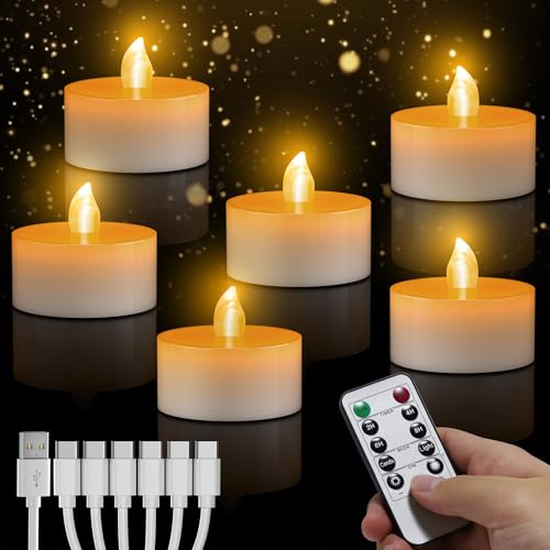 daphomeu Uppladdningsbara LED-värmeljus med fjärrkontroll, 6 stycken, flamlösa LED-lampor med 24 timmars cykeltimer, elektriska ljus för bröllop, fester, halloween, jul, heminredning