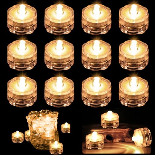 Joycabin 12 stycken dykbara LED-lampor, flamlösa LED-ljus, värmeljus, mini undervattensljus, vattentäta lampor, små LED-dekorativa lampor för akvarium, trädgård, damm, bröllopsfest (varmvit)