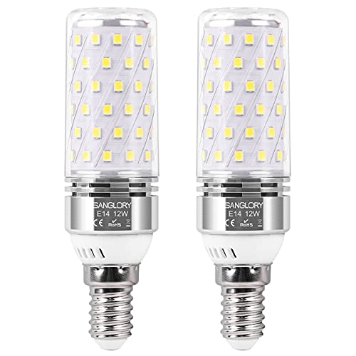 SanGlory 2-pack E14 LED-lampor kall vit 6 000 K, LED E14 12 W majskolv LED maj E14 1350 lumen ersätter 100 W glödlampa, 360° glödlampa E14 levande ljus