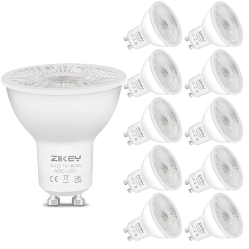 ZIKEY 7W GU10 LED-lampor, neutralvit 4000K, 650LM, motsvarande 60W Halogen Spotlight, 38° spridningsvinkel, energibesparande LED-lampor, ej dimbara, 10-pack