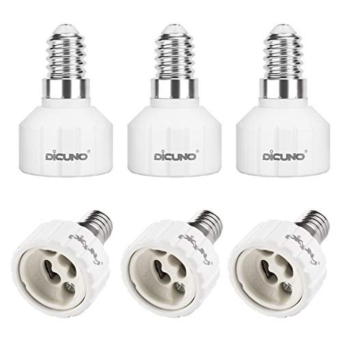 DiCUNO E14 till GU10 omvandlare för lamphållare, Uttag för glödlampor och LED-lampor, Maximal effekt 200W, 0~250V, 160 grader värmebeständig, 6 stycken