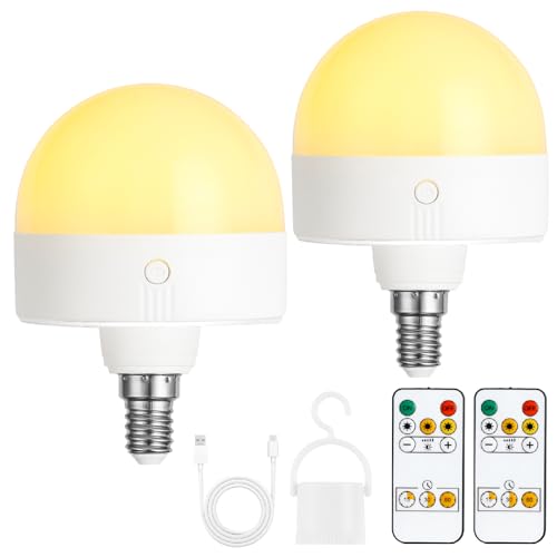 Uppladdningsbar glödlampa med timer och fjärrkontroll, Dimbar batterilampa med magnetisk bas, E14 löstagbar laddningslampa LED-lampa, Icke-hårdtrådade lampor med 3 färgtemperaturer, 2 paket