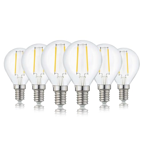 Hellum E14 LED-glödlampa, varmvit, 6-pack, 2,2 watt, G45 Transparent droppformad glödlampa, energisnål ersätter E14-led-lampor, varmvit, 25 watt, 2700 k och 250 lm 220797