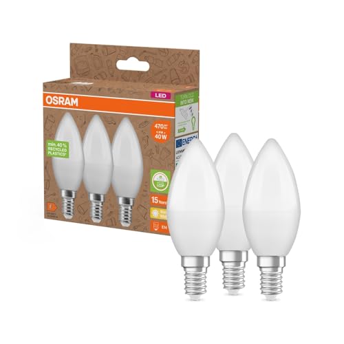 OSRAM NATURE LOOP - särskilt hållbara LED-lampor av återvunnen plast, förpackning med 3 lampor, ersätter traditionella 40W glödlampor, ljusform, E14, varmvit (2700K), miljövänlig