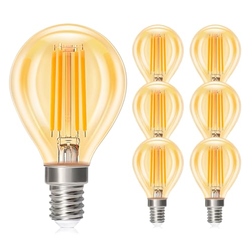 Dehobo E14 LED-lampor, varmvit glödlampa, 4W (motsvarande 40 W), bärnstensglöd, 2 700K, Retro LED-filament, 2 700K varmvit, dimbar, 6 st