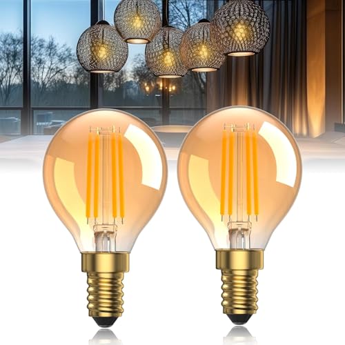 LED-lampor E14 Små Skruv Varmvit Amber 2200K Vintage G45 Glödtrådlampa 4W Motsvarar 35W Dekorativ Edisonlampa-2 Förpackning Energiklass F
