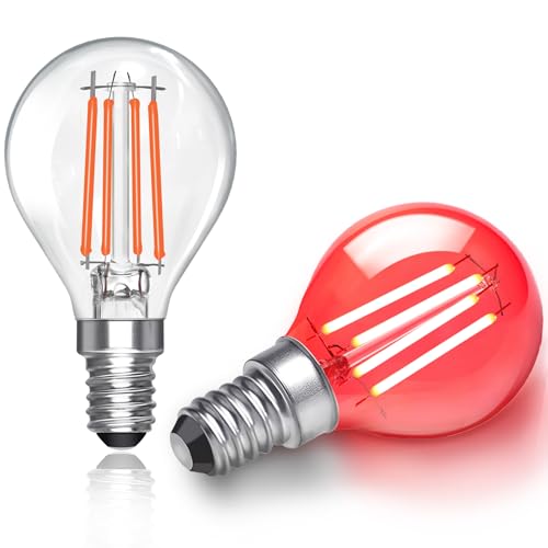 Set med 2 röda LED-lampor, E14 4W, glödlampa, 40 W, rund glödlampa, G45, 400LM, AC 230 V, 360° balkar, färgglad energisparande glödlampa, dekoration för bröllop, halloween, jul