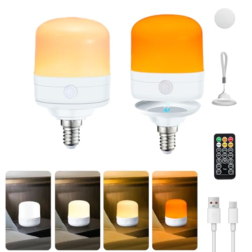 Pulsky 2 St E14 Led-Lampor, Typ C Uppladdningsbara Batterilampor Med 4 Färger, Fjärrstyrd Glödlampa Med Dimbar Timer, Nyckelband Nödlampa Lämplig För Camping Och Inomhus