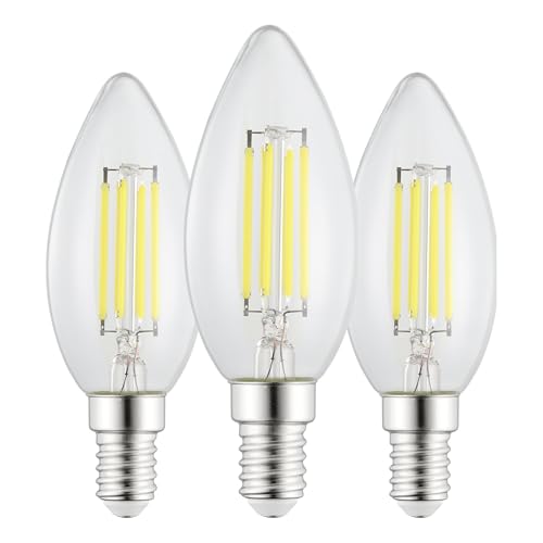 HUAMu E14 LED-glödlampa dimbar 6 W 60 W ekvivalent kall vit 6 500 K SE (liten Edison-skruv) LED-ljuskronor lampor C35 vintage filament energibesparande kandelaber glödlampa 10 paket