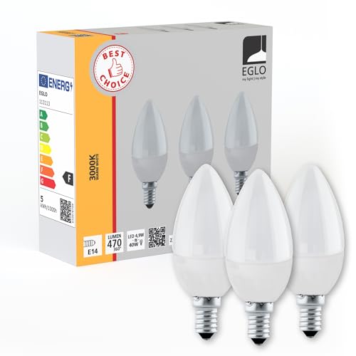 EGLO E14 LED-lampa i ljusform, opalvit glödlampa 5 Watt (motsvarar 40 Watt), 470 Lumen, 2700 K, lampor varmvit, C37, Ø 3,7 cm