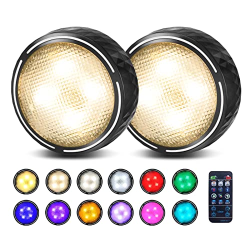 VOAKZEF 2 st pucklampor, uppladdningsbara LED-pucklampor, 13 färger under skåpbelysning, självhäftande lampor, magnetisk trycklampa med dimmer och timer för sovrum, kök, garderob, trappor, bil