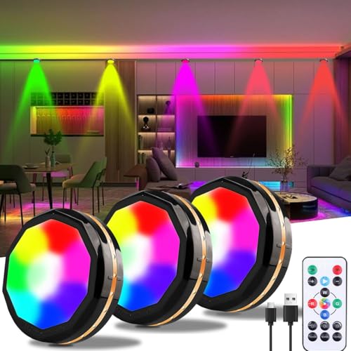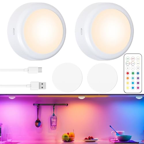 MODOAO Under skåp kökslampor, 3-pack RGB under skåp LED-lampor, uppladdningsbara pucklampor med fjärrkontroll, dimbar, med timer, för kök, garderob, sovrum (svart)