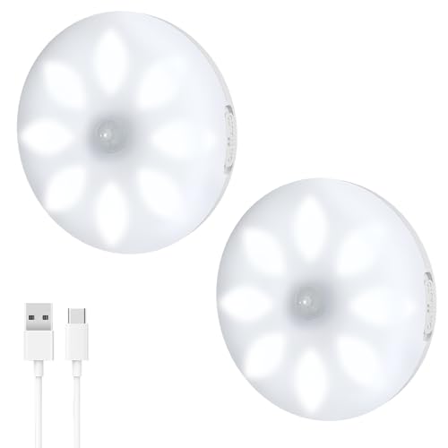 Skåplampa, Hually LED Nattlampa(2-pack) 24 LEDs Rörelsesensor Lampor USB Uppladdningsbart Batteridriven, Självhäftande Nattlampa med Avtagbar Magnet för Garderob Hall Sovrum Kök, Varm Vit