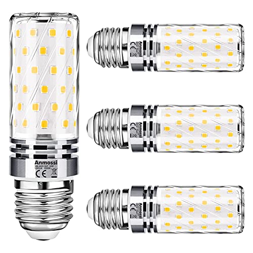 Anmossi E27 LED-Glödlampor,6000K Kallvit 12W E27 LED-Lampor,Motsvarande 100W Halogenlampa,LED-Majslampa,AC100-240V,1200Lm,ej Dimbar,Edison Lampa,4 Förpackningar