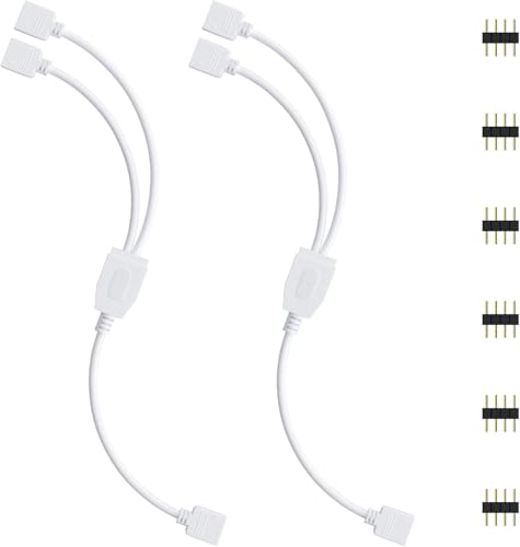 REDTRON LED-remsa ljuskontakt, 2st 2-Port LED Strip förlängningskabel med 6st 10mm 4 Pin hane Connector för 5050 3528 2835 LED Strip Light DIY Tillbehör