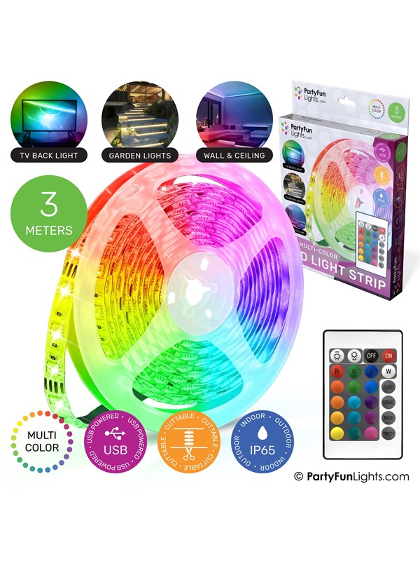 Party Funlight USB LED Light Strip - 3m Including Remote Control