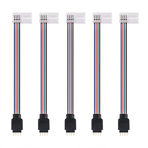 euroharry 4-stifts LED RGB Strip Light Connector 10 mm breda remsor på jumper lödfri Clamp-On Pigtail adapter för 5050 flexibel LED Strip Light (5 stycken LED lödfria kontakt)