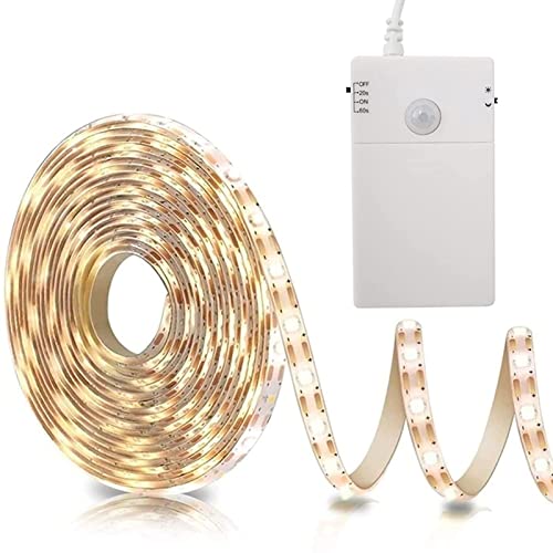 LED Strip Rörelsesensor Batteridriven, 2M 60 LED Light Strip 2 Lägen Rörelsesensor Säkra Nattlampor Inomhus Självhäftande för Garderober, Trappor, Kök, Säng, Garderob (2700K Varmvit)