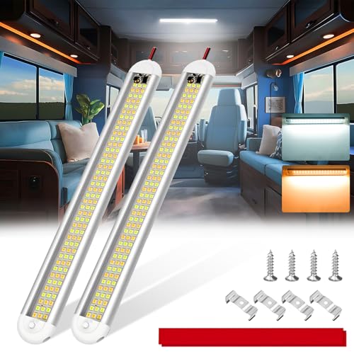 TrustWheel 2 stycken 12 V LED-bilinteriörbelysning, 12 V LED-list 1 800 LM innerljuslist med strömbrytare för husbil, skåpbil, husvagn, båt, kök, badrum, bar, lastbil, 3000 K/6000 K, ultraljus