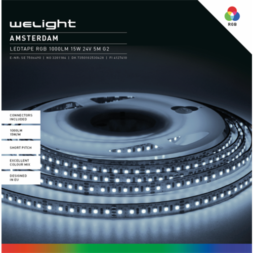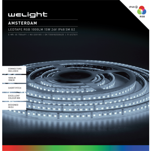 Welight LED-list, 15W 24V, RGB, 5m, IP68