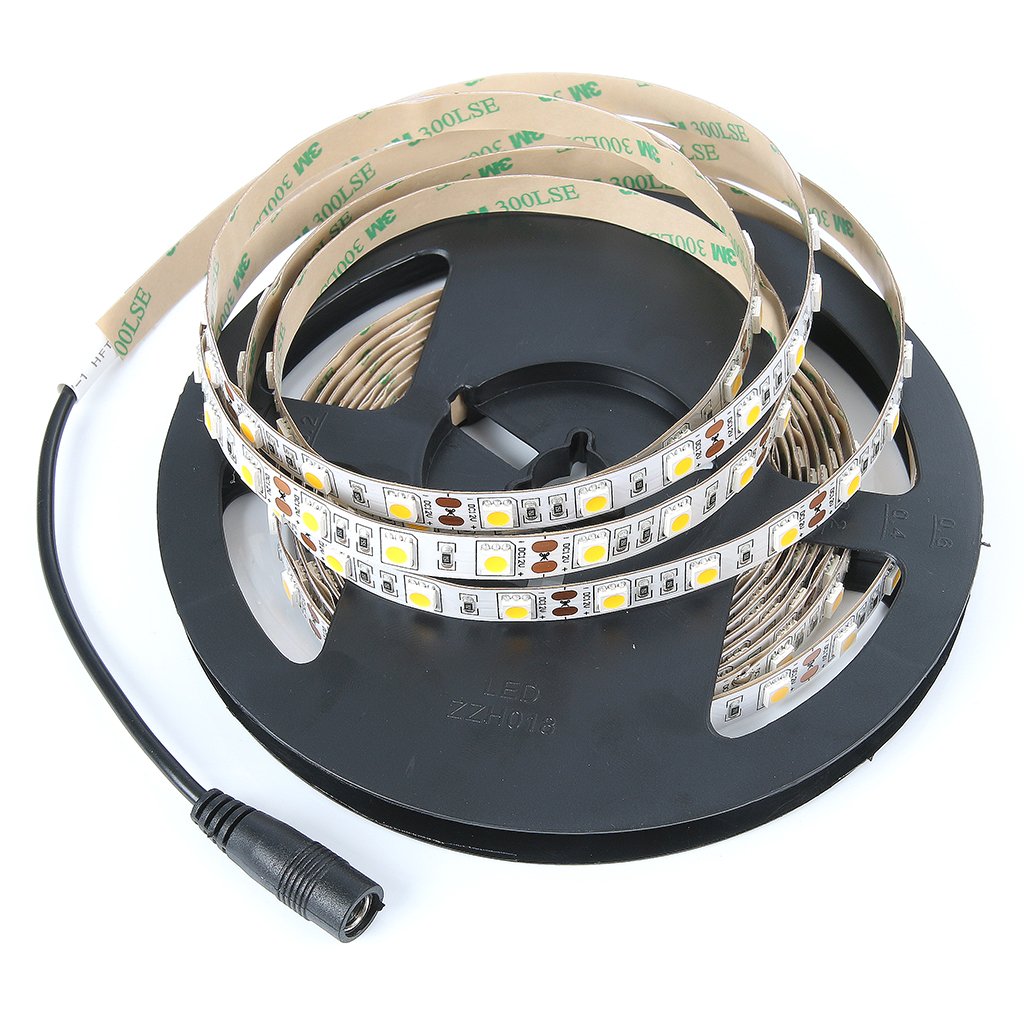 iNextStation LED-remsa ljus varmvit, 5 m 12 V LED remsa strömförsörjning belysning, skärbar, självhäftande flexibel LED-list för sovrum, inomhus, hem, kök, hem LED-belysning, bar