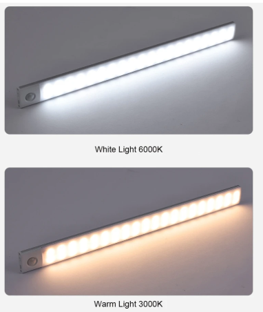 Vit LED-List med rörelsesensor, magnetisk, automatisk LED, varmvit/kallvit, 40cm